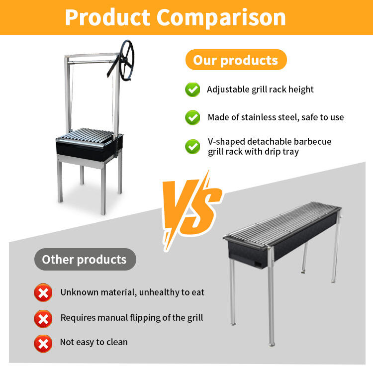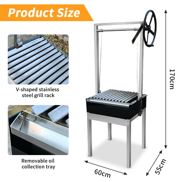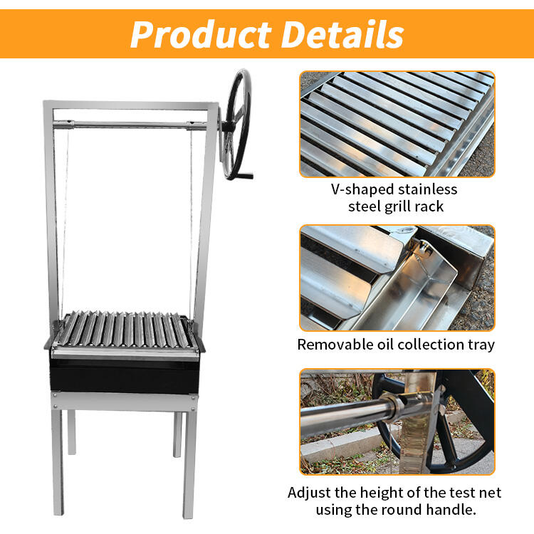 The black single-sided grill rack paired with a V-shaped stainless steel grill offers both a premium feel and exceptional durability! The adjustable grilling height allows for precise heat control, ensuring even cooking and maximum flavor absorption for skewers and meats. Experience authentic Argentinian barbecue flavor, perfect for outdoor gatherings and family parties. Customization is also available, tailored to your specific needs from size to details, unlocking a personalized grilling experience and allowing you to enjoy a culinary feast anytime, anywhere!