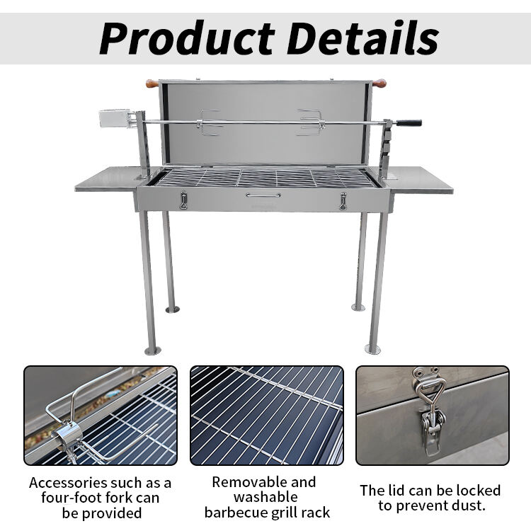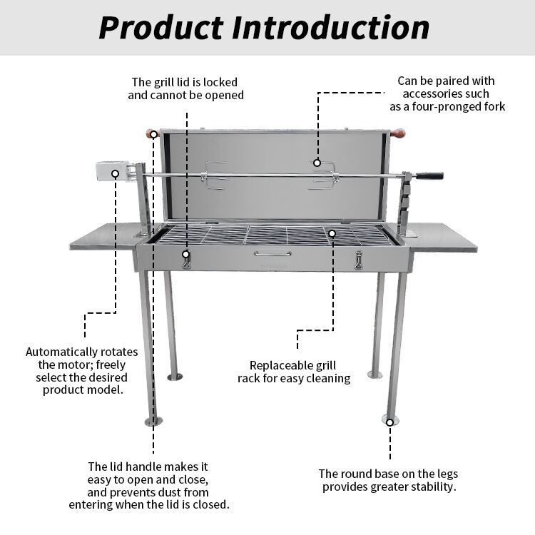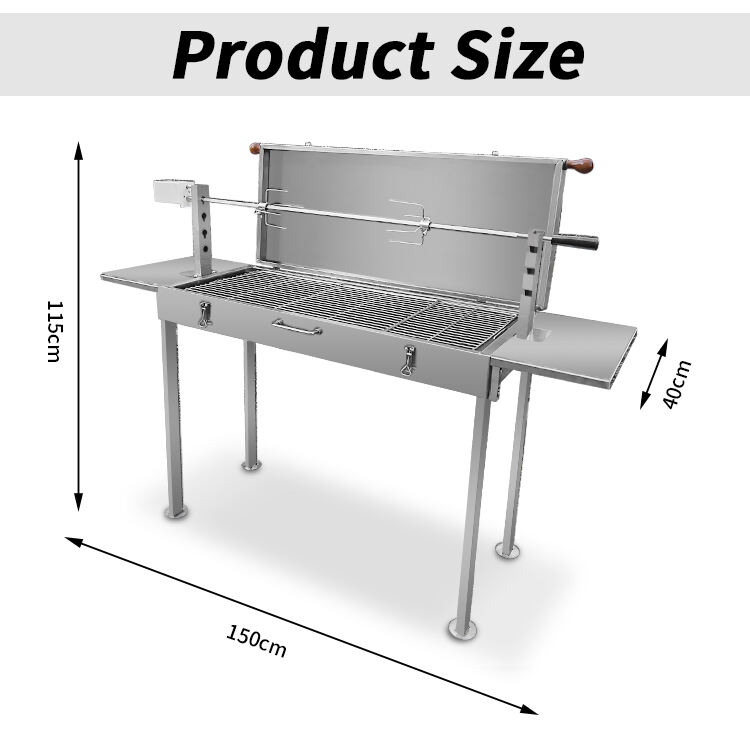 This 150×40cm wide grilling area, with a 115cm height when the lid is open, accommodates a variety of ingredients; when closed, it's 75cm, saving space and making it easy to store. It comes with large skewers and an automatic motor rotation, eliminating the need for manual flipping and ensuring evenly charred skewers. The detachable grill rack is super easy to clean, and the round base legs provide rock-solid stability. A must-have for gatherings with friends and family picnics, it easily allows for barbecue freedom, unlocking the smoky flavors on your palate!